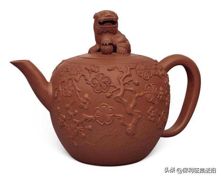 22,清早期朱泥贴梅花狮球钮大圆壶