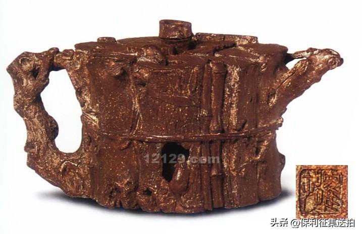 47,清陈鸣远制松段紫砂壶