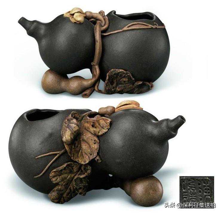 56,陈鸣远款紫砂葫芦形水丞