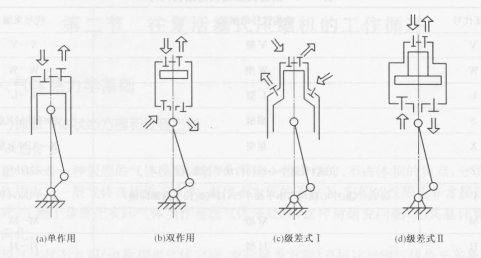 (3)级差式压缩机:同一气缸与活塞各端面形成几个工作容积,并实现不同级次的压缩,如图2(c)、(d)所示。