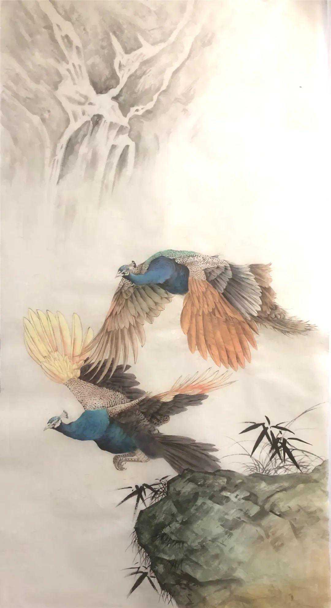 《溪谷华羽》132cmx67cm纸本设色2023年