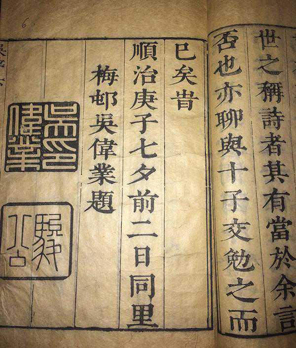寒斋所藏此书数年前得于沪上。栏线清晰,字口锐利,为顺治刻最初印本无疑。正文字体略扁方,与同时期的汲古阁刻本风格极为相似。清初江南地区有一批书都是类似的样式,如顺治十四年苏州顾有孝编刻的《唐诗英华》,康熙时苏州天禄阁刻本《唐诗正》等,可能是出于同一批写工和刻工之手。