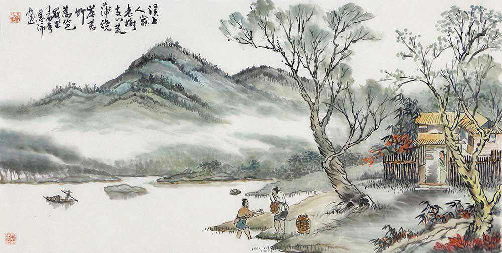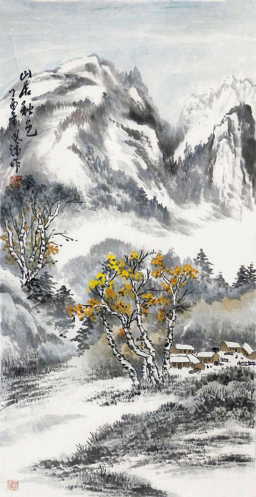 这幅于恩沛老师的国画山水作品《山村初云》,呈现秋日佳景,设色对比,布局严谨,山影连绵,云气初生,水波不兴,一抹清新的色调,更是把画面点缀的更加生动,想必在这云雾缭绕的小村之中,必有高士隐居于此,足不出户,听泉声,沐清风。作者在山水画的传统题材中融入了人文的思想,在画面中融入了个人情感,在皴染之间更多地体现山水的性情,令人思索流连,这样的山水画装点家居颇有韵味,值得拥有。