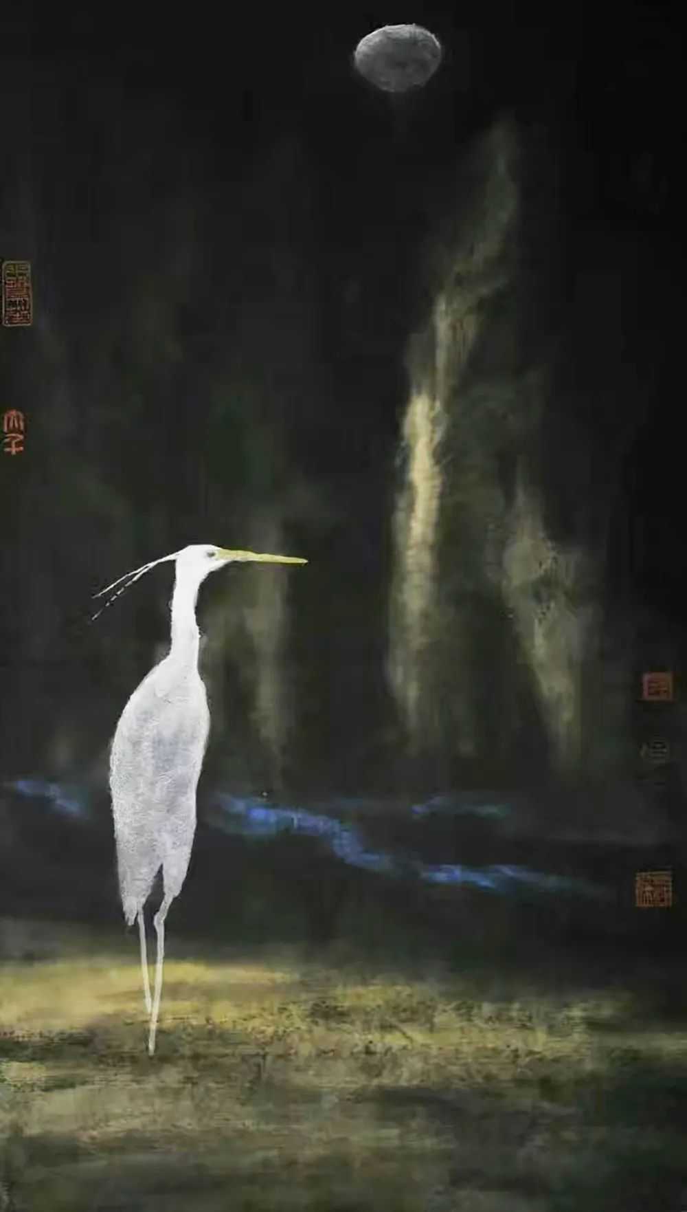 从小钟情书画,尤其喜欢写意花鸟,潜心钻研,勤学苦练。笔下之鹭鸟,笔墨精炼,融汇中西,形神兼备,风格清新。洁白的羽毛,修长的玉姿,或独立滩头,或展翅云霄,文雅高洁,宁静闲适,仿佛置身远离尘嚣的仙境,尽享静雅之美。