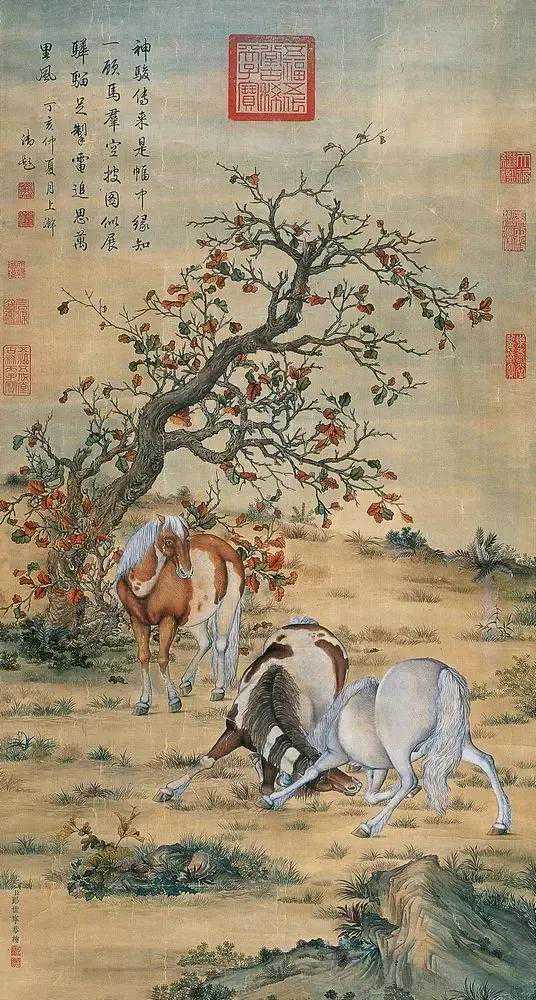 很多画家都对郎世宁很是鄙夷,其中不乏一些大画家。我以为这样的心态恰好能反映出文化上的不自信。郎世宁可以用西洋画透视法来画我们的国画,他画的新“国画”固然有僵直感,但不失另一种中西合璧的新意。试看二十世纪我国诸路画家多少都尝试中西合璧的创作思路,那么回头来再看郎世宁,我们还有什么理由要鄙夷他呢?