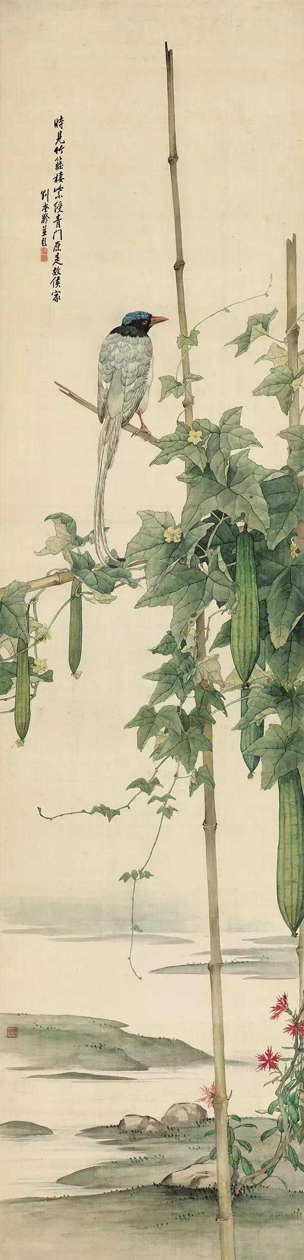 刘奎龄对郎世宁的继承在于彻底的消化,令人信服的自圆其说。他自幼学习郎世宁画法,同时深入学习研磨五代、宋、元诸家大师作品。他的绘画特色在于惯用西洋画着色技巧、构图,融合中国传统工笔画技法,形成自己特有的艺术风格。刘奎龄一直强调,中国画中吸收了西洋画技巧,不等于说中国画变种了。时至今日我们可以理解刘奎龄先生的艺术眼界确实高,艺术心胸确实宽广,而最重要的是秉承洋为我用的精神,说明其拥有彼时很多人都不曾有也不可能有的文化自信心,这自信心来自眼界也来自个体深厚的传统文化底蕴。