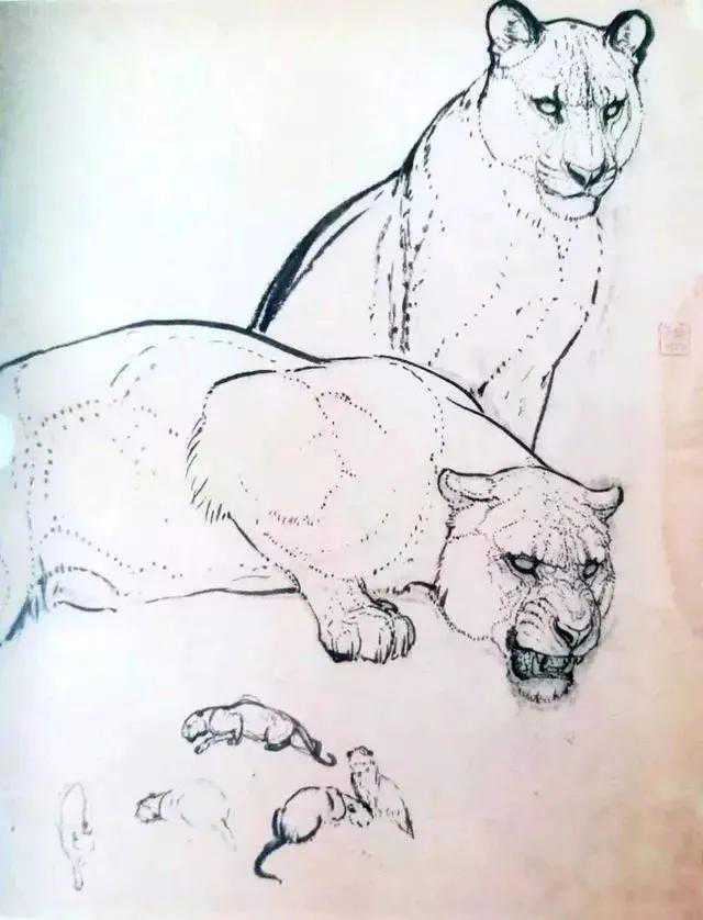 在刘奎龄所涉及的领域,最令人称道的恐怕是动物画了。他巧妙的将西方水彩画的“湿画法”与传统中国画的“没骨点染”技法相结合,摸索出自己的“湿地丝毛”技法。看刘奎龄的作品,你会发现,用“湿地丝毛”技法画动物的皮毛显得非常逼真。另一方面,他笔下动物的解剖结构又是如此准确,主要得益于他常年的观摩研习,很多作品背后都有大量的写生素材支撑,这是西方油画大师的一贯做法,刘奎龄借鉴了这样严谨的创作方法来创作他的工笔小写意国画,方法着实新颖,精神也着实也令人钦佩。所以我以为刘奎龄真正称得上的是洋为我用不变其宗的画家。