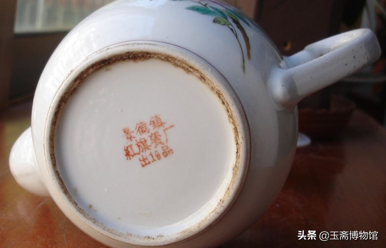 红旗瓷厂粉彩花鸟纹茶壶底款