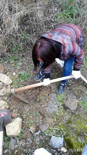 再看这边,女干警们毫不示弱,挽起袖子拿起锄头,纷纷加入到挖树坑的队伍中。
