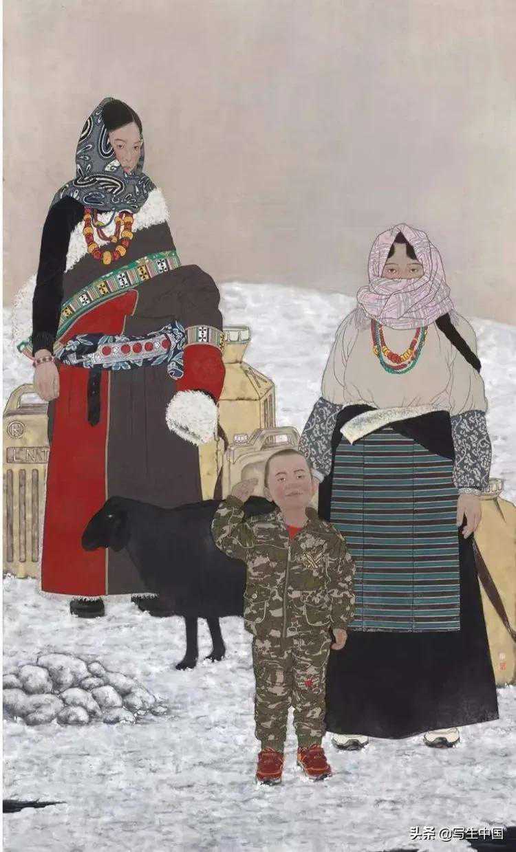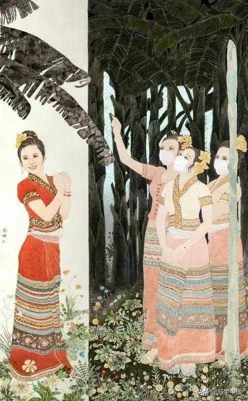 《小门神——你没戴口罩》中国画60x90cm聂鹏