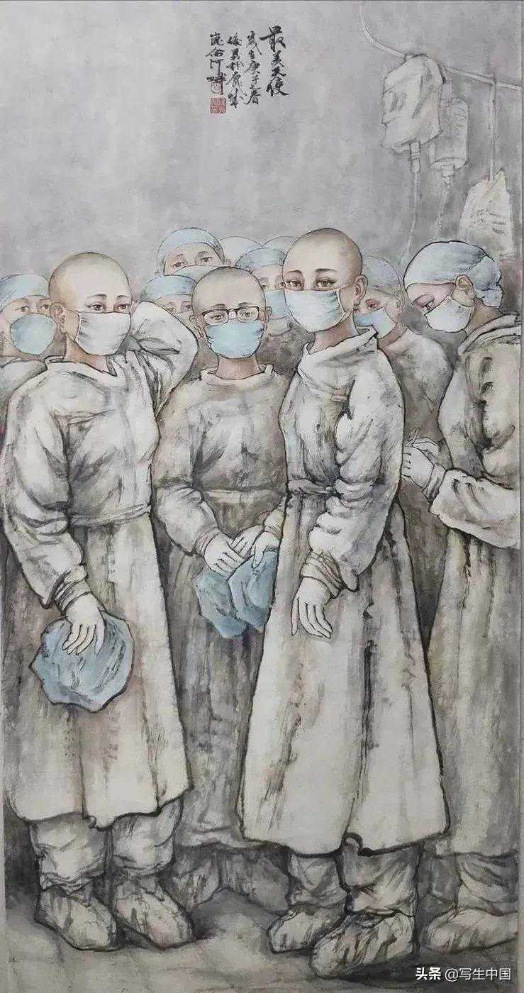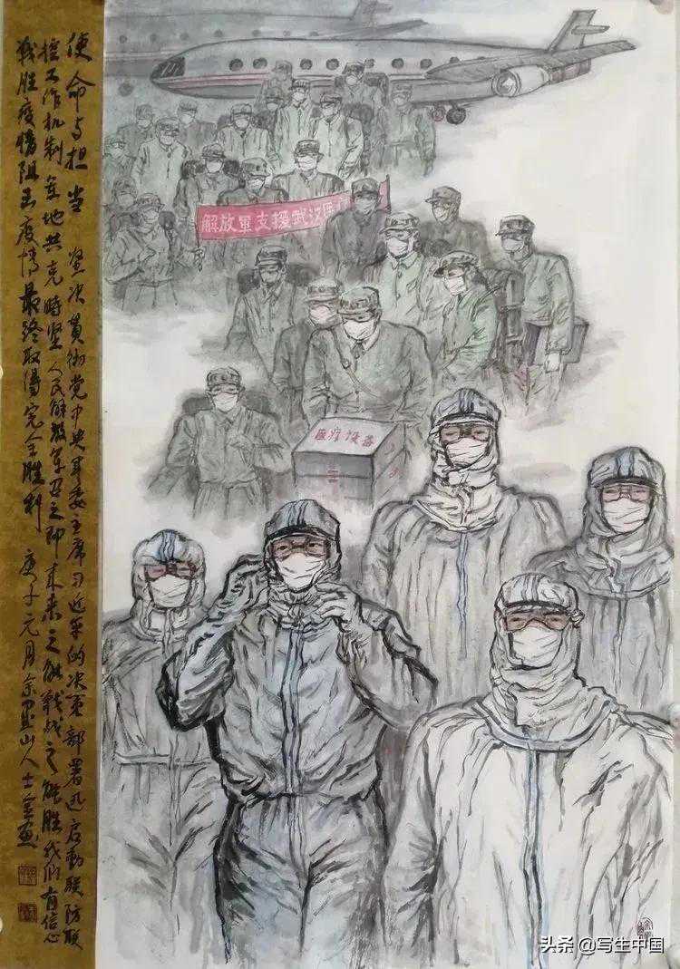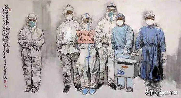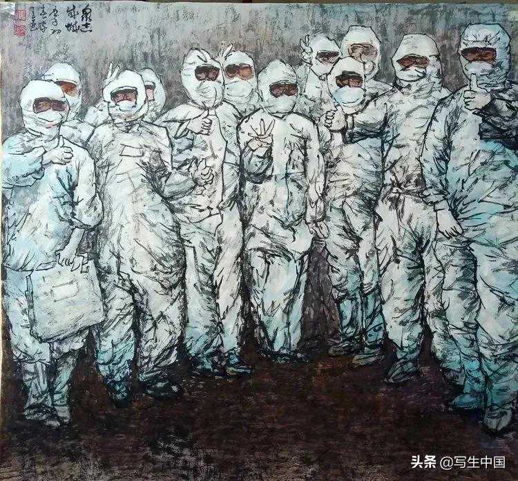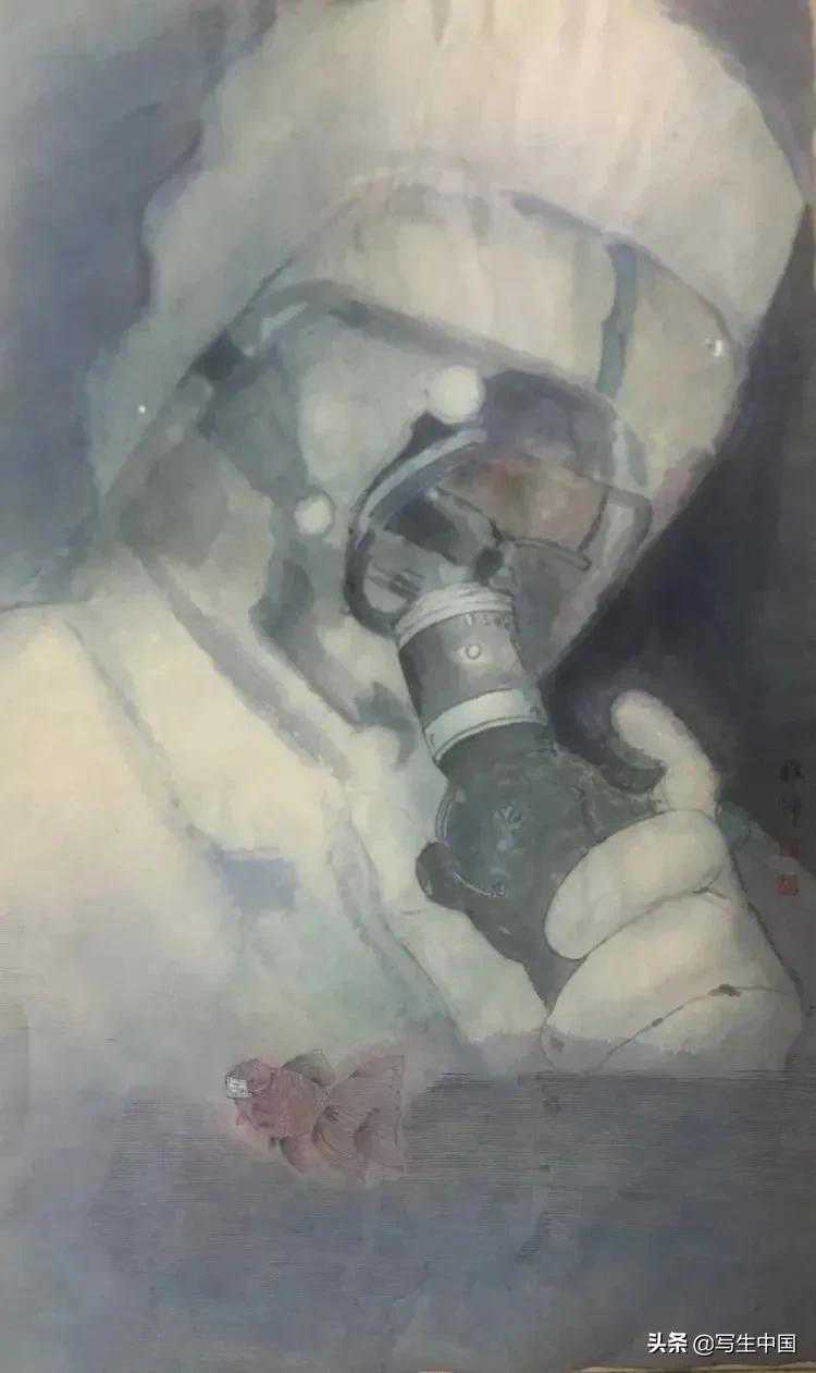 《拿画笔的抗疫战士》中国画蒋洪亮