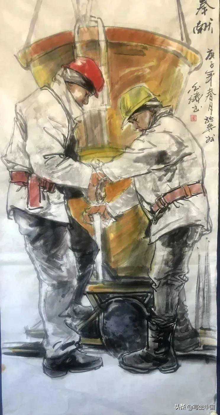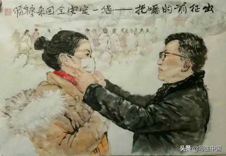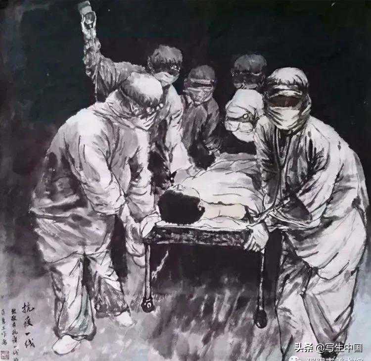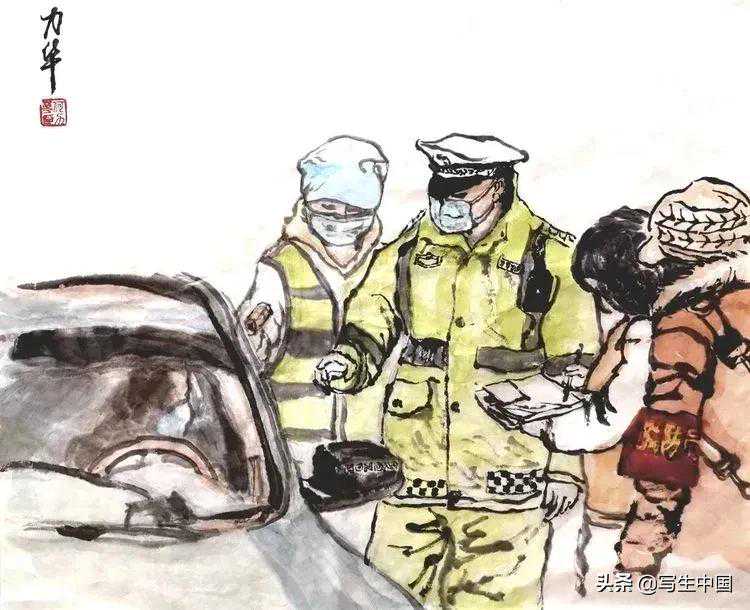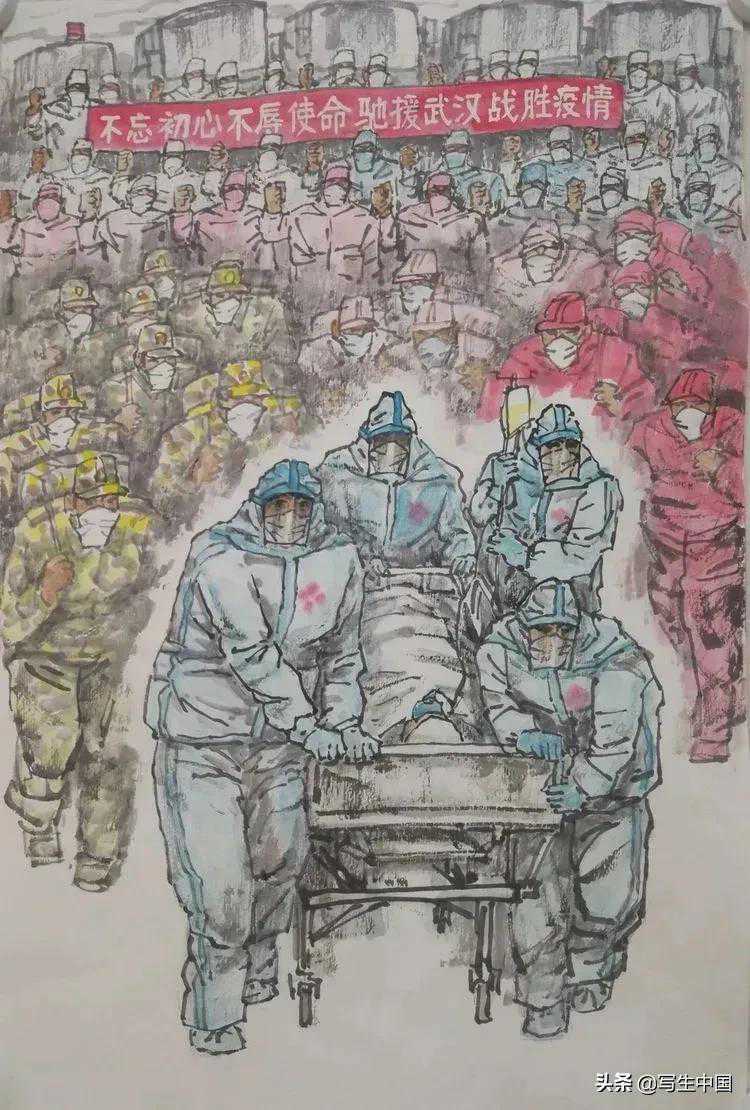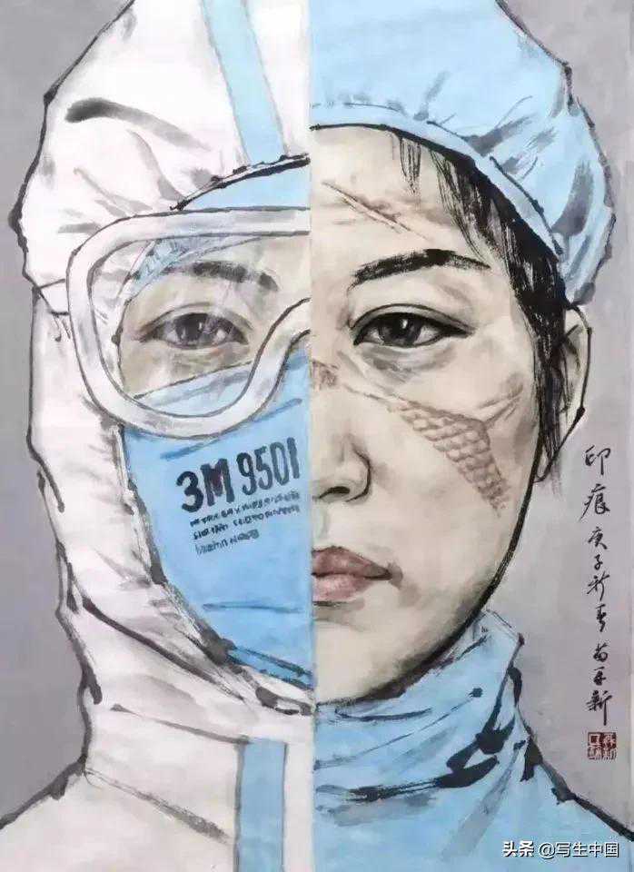 《拿画笔的抗疫战士》中国画蒋洪亮
