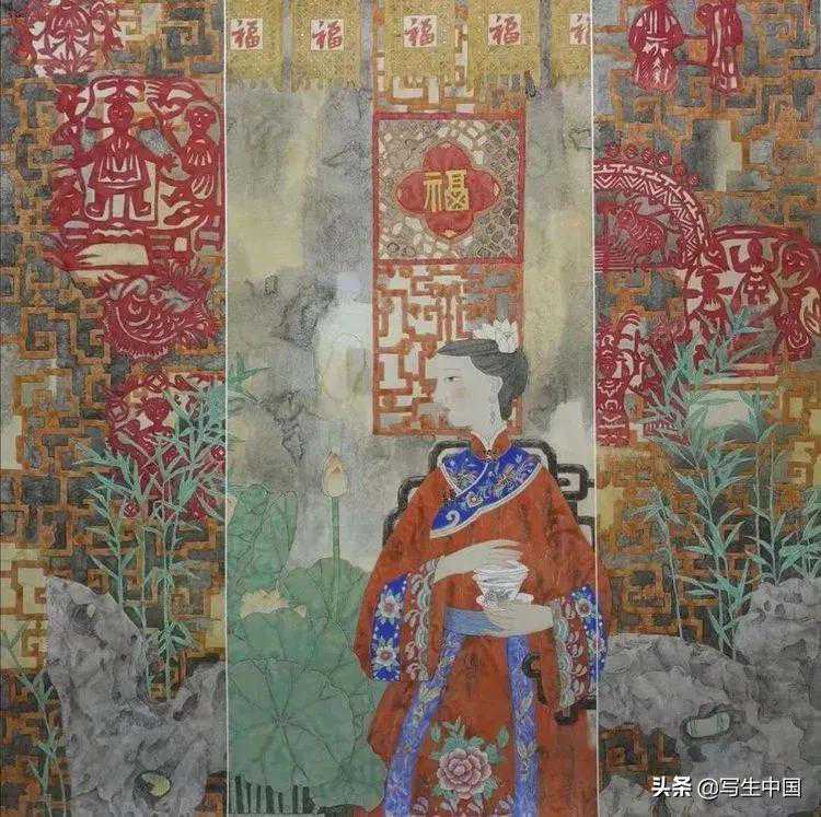 《淡妆浓抹迎朝阳》国画60x50cm叶晓秋