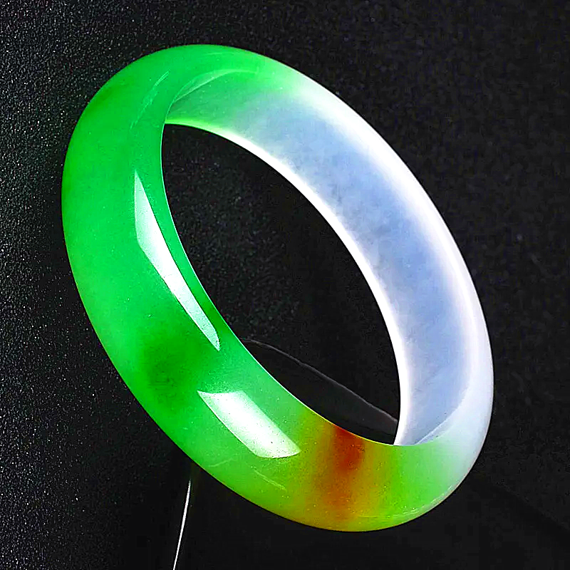 福禄寿三色翡翠手镯翡翠矿区主要集中在缅甸,但是熟悉历史的人可能都知道,这一地区在明清时,还是属于我国云南的,因此,翡翠制品从一开始就带有非常浓厚的中华文化色彩。