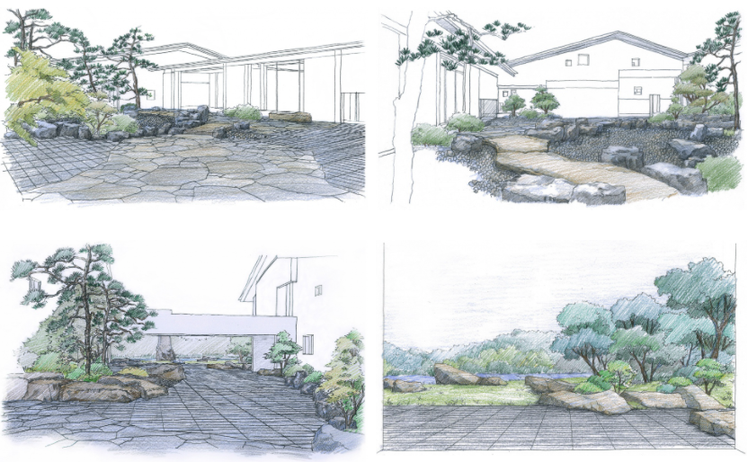 ▼庭院中心的石桥延伸视觉,松树自然生长