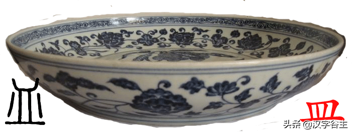【盂】,【于+皿】,形声会意合体字,于皿为盂,从皿,于声。
