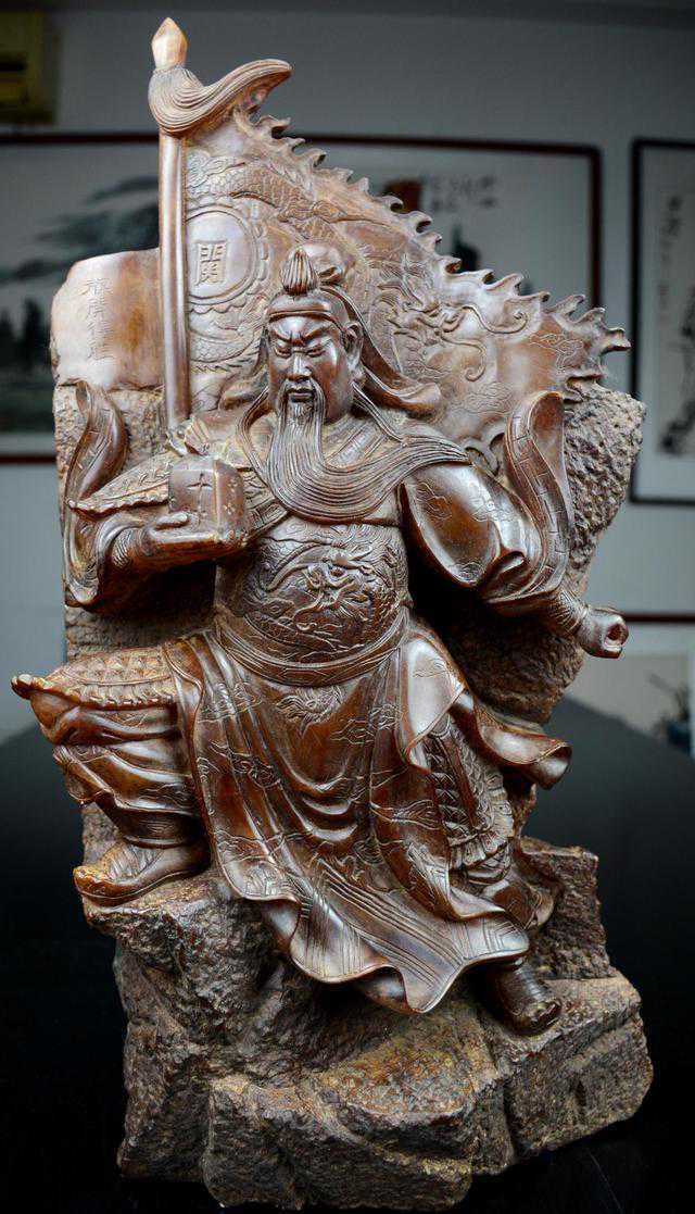 简介图:郭功森寿山石雕作品《旗开得胜》图:郭功森寿山石雕作品《旗开得胜》记者在现场看到,展出的郭功森的《旗开得胜》作品的材质是长乐石。该作品高约50厘米,宽约20厘米。经过打磨的部分,经过灯光照射,呈现透明气质。正面没有打磨的底部和整个背面,则保留该石材的本来面目。该作品充分展现了关羽在其平生事业中表现...