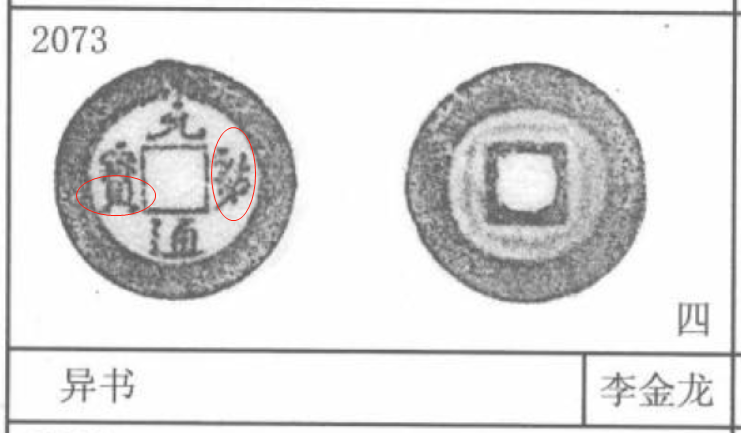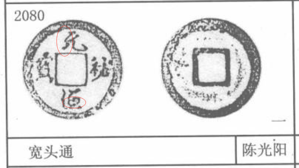 2080号:宽头通。虽然名字是宽头通,但是“元”字书写也很独特,两只脚左短右长差异明显。“通”字头宽而底缩成一团。