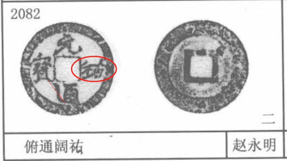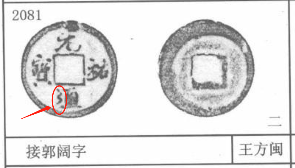 2081号:接郭阔字。个人觉得最明显的特征是“通”字的“走之底”。元祐通宝行书“通”字的“走之底”绝大部分在左边是一笔带过,而这个版弯曲明显可见。