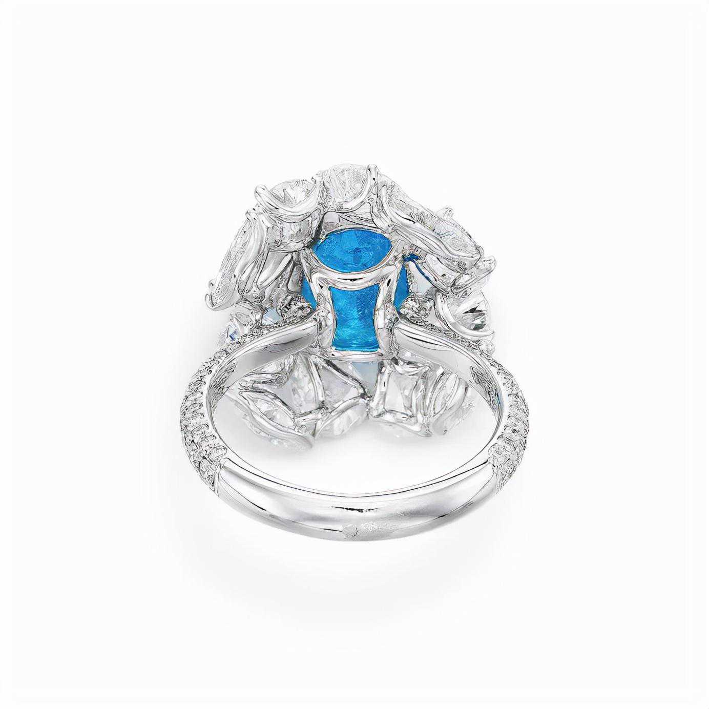 3.89克拉椭圆形切割帕拉伊巴碧玺,产自巴西,配镶圆形钻石,以18k白金镶嵌。
