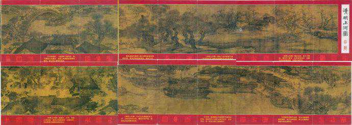 “清明上河图”火花:以宋代张择端的“清明上河图”为题材,由开封火柴厂以连幅拼图形式移植于28枚火花之上(图31)。印在火花上的该画比原画缩小了2/3,将这28枚火花拼联起来,可长达147厘米,为中国最长的一套连幅火花。该套火花采用白描手法,线条流畅,土黄色的底色配以赫色的线条,保持了名画特有的古朴和凝重。