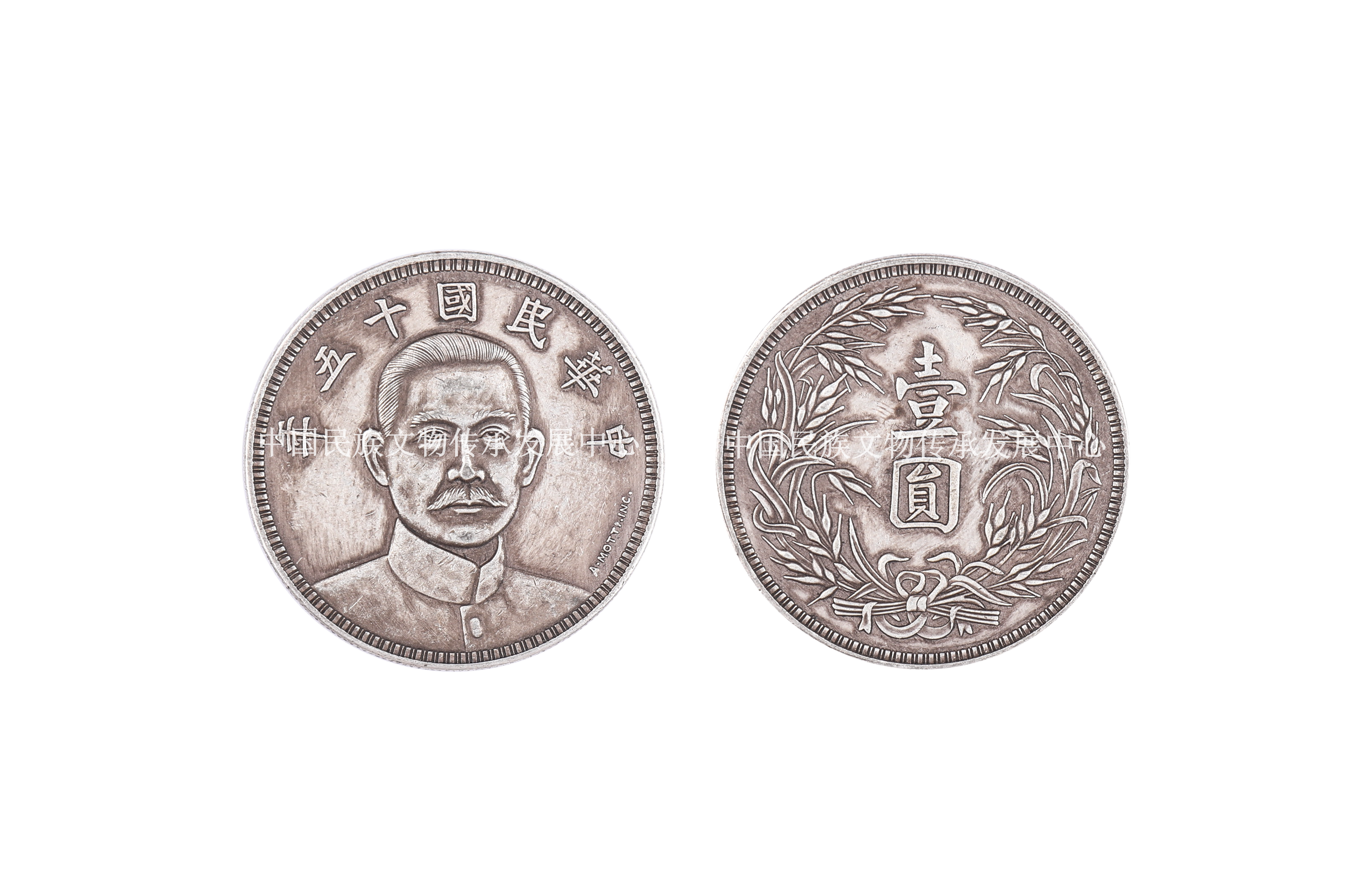 1929年(民国十八年),广州国民政府决定由广东造币厂试铸了面值为壹元的银币样币。该币正面镌孙中山先生正面像,上铸“中华民国十八年”七字。背面正中镌“壹元”二字,外圈有两束嘉禾,其刻模手法非常独特,两嘉禾禾芒芒尖刚好相接,这是其它币所从未有过的。此币是民国银币之中的大珍品,极具收藏价值与投资价值。