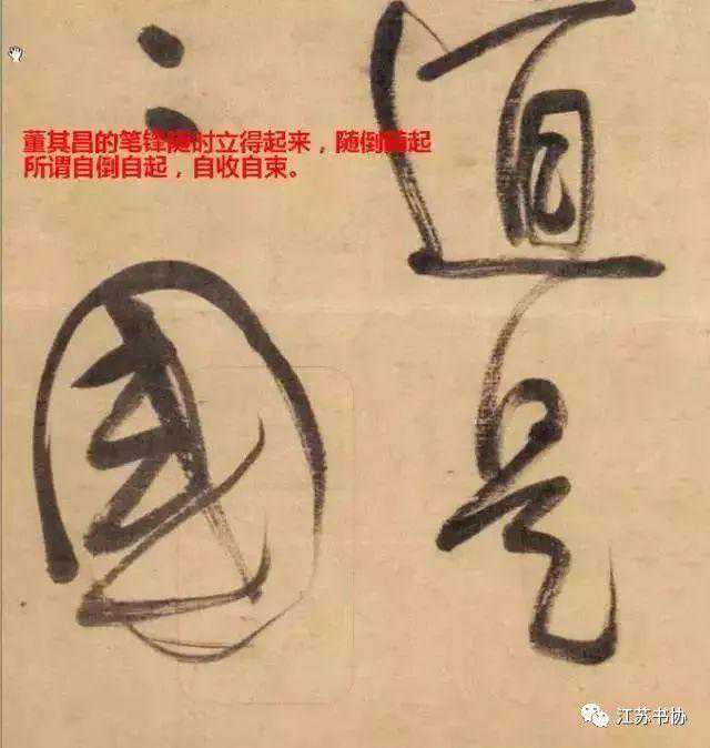 所以运笔的时候,笔毫总是一曲一挺,时展时聚地运行着,尤如钟表的发条,铮铮欲弹走,笔一提纸,笔头就能恢复挺直齐顺,这就是明代大书法家董其昌其所说的:“自起自倒,自收自束”,宋代苏轼说“方其运也,左右前后,却不免欹倒,及其定也,上下如引绳,此之谓笔正。”笔锋收起时象悬着重物的绳子一样挺直,古人是何等自如地运用毛笔啊!