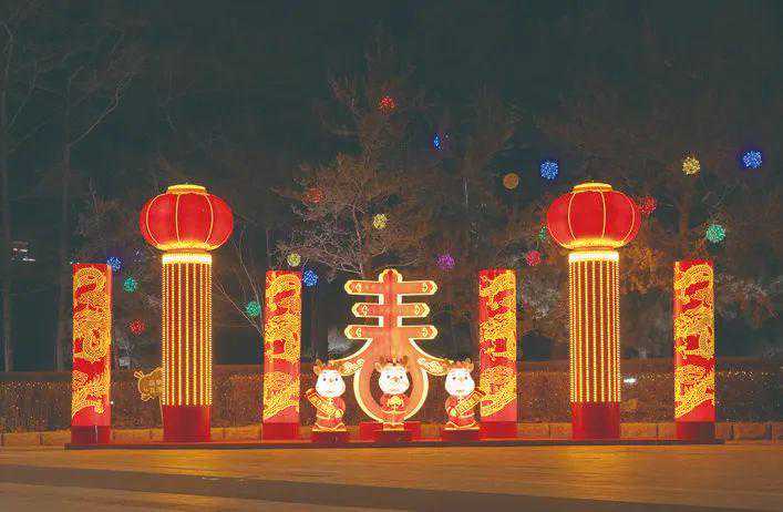 为了营造节日氛围,长春市启动节日亮化工作,对人民大街、解放大路、景阳大路、吉林大路等51条街路、48处节点、卫星广场、人民广场、南湖广场、新民广场等15个广场及牡丹园、胜利公园、儿童公园等13个公园进行亮化美化,形态各异的灯笼、树灯、挂饰组成璀璨的夜景小品,让冰雪与缤纷夺目的亮化景观交相辉映、温暖迎宾。