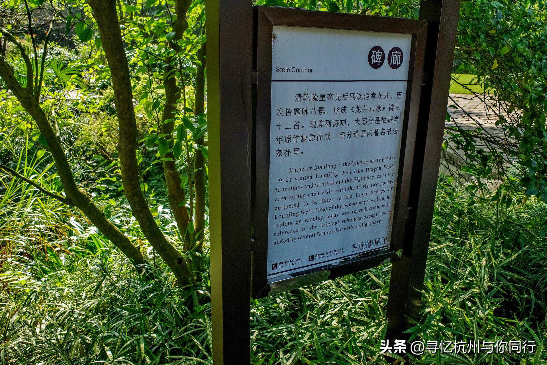 2021年10月23日,碑廊简介:清乾隆皇帝四次巡幸龙井,题咏八景,留下《龙井八咏》诗32首展示在碑廊。