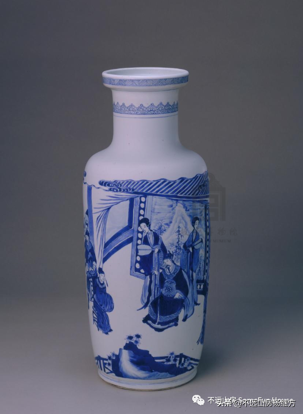 济南博物馆藏清康熙青花开光人物纹卷筒