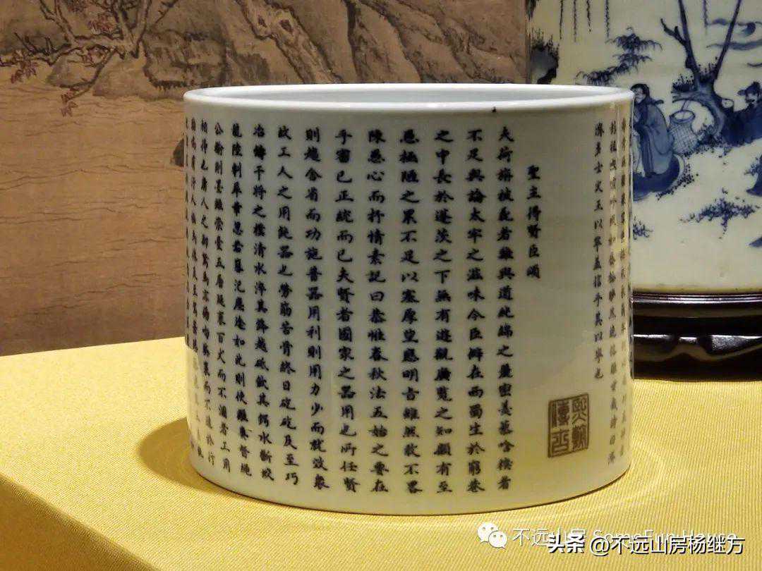 北京故宫博物院“贺岁迎祥”展康熙青花圣主得贤颂笔筒