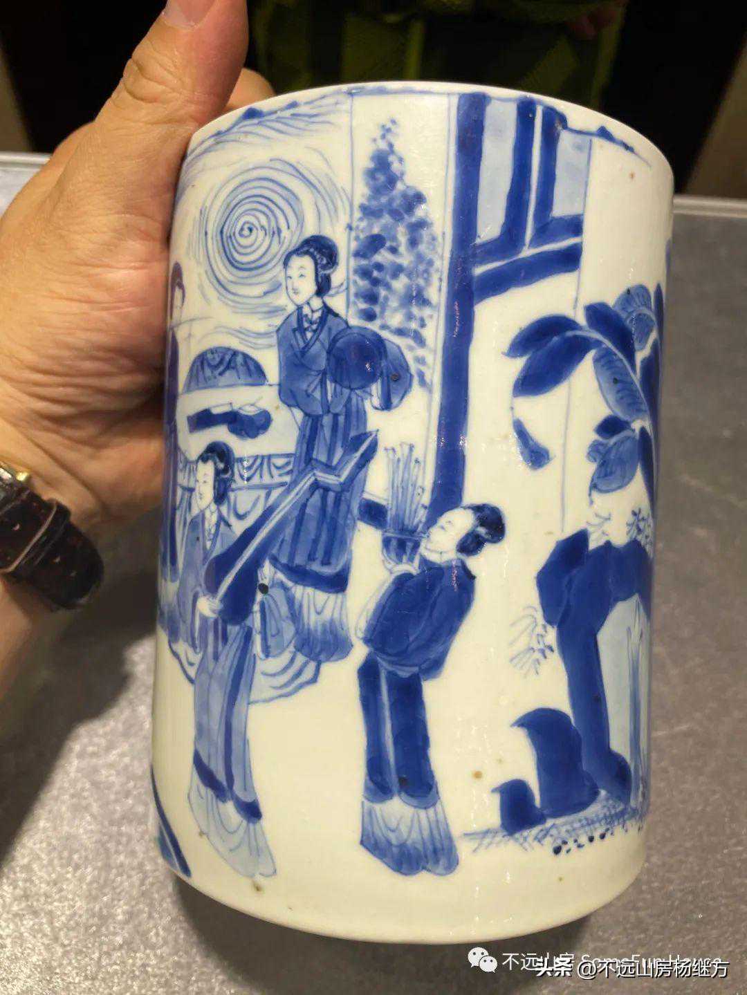北京博美2021春的康熙青花清夜游昭君图笔筒