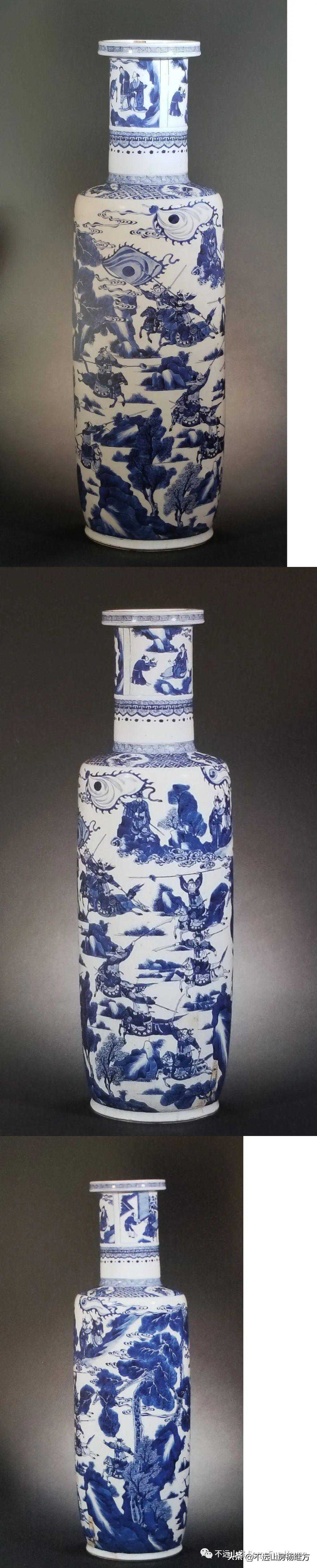 北京保利2011秋的圣路易斯博物馆旧藏的康熙青花刀马人物纹棒槌瓶,高76厘米