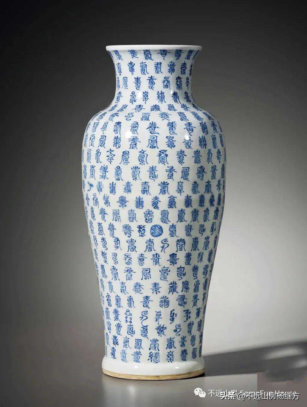 中贸圣佳2021春的康熙青花百寿图棒槌瓶,高36厘米