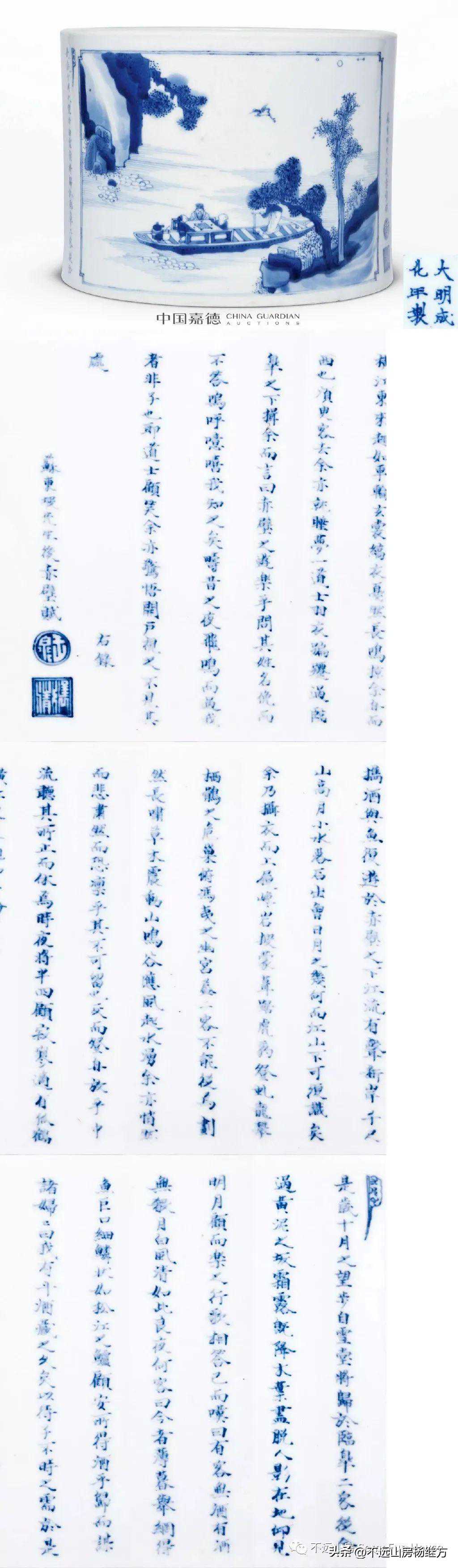 清康熙青花《后赤壁赋》诗画笔筒「大明嘉靖年制」青花楷书寄托款《雄奇昳丽——十七世纪的社会和文人美学》