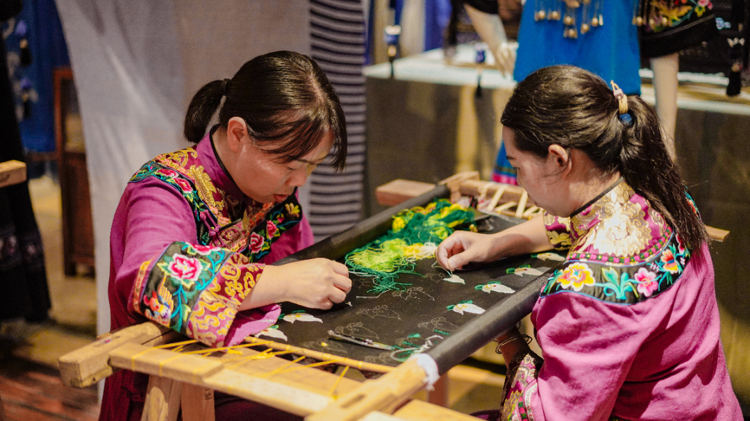 松桃苗绣馆分为国家级非物质文化遗产“松桃苗绣”展示区、苗族服装服饰展示区、场景体验区,既展示有一定历史价值的传统刺绣物件、“鸽子花·松桃苗绣”品牌产品和系列非遗产品,又设置了体验打卡场景,游客可通过欣赏和租赁等形式增强对苗族服饰文化的体验感。
