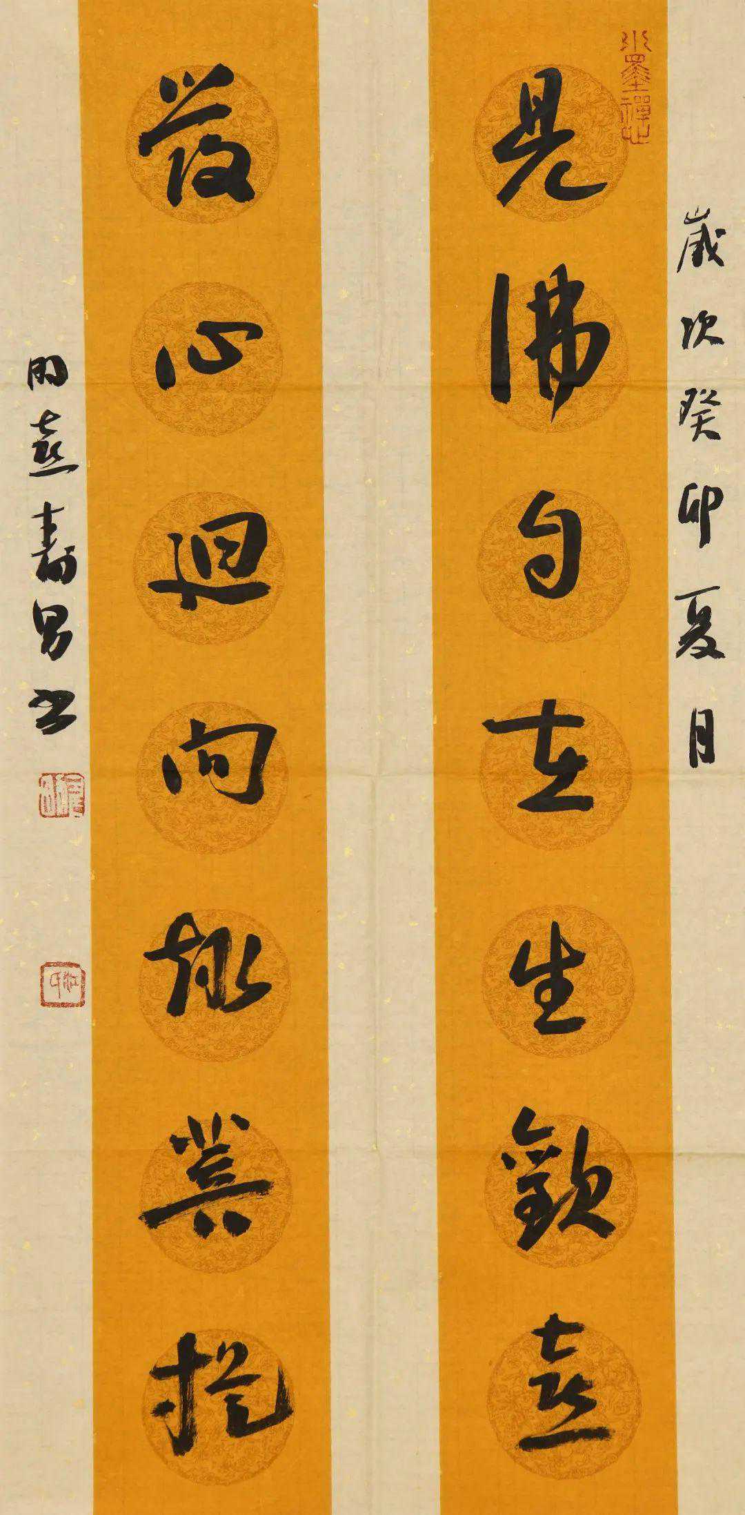 ▲《见佛发心联》69cmx34cm