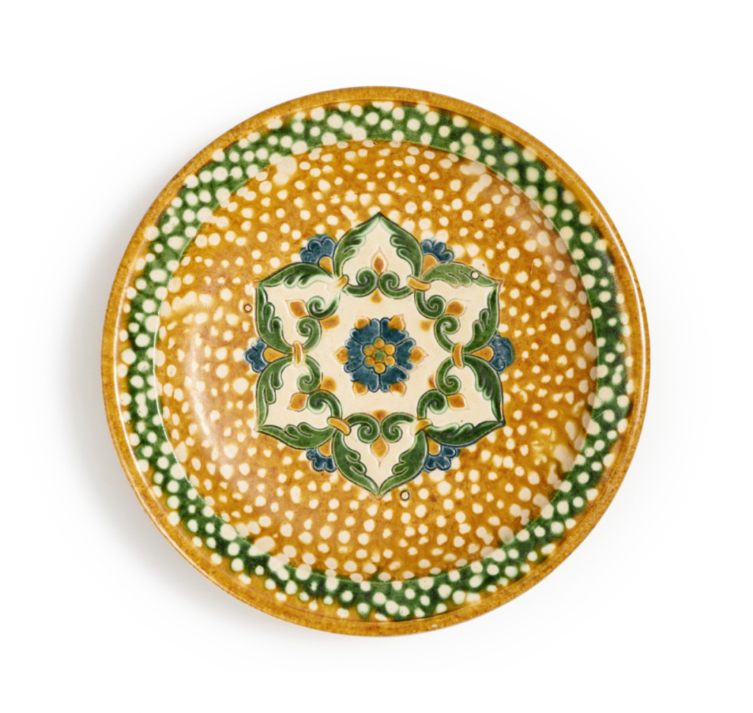 唐三彩加蓝宝相花纹三足盘