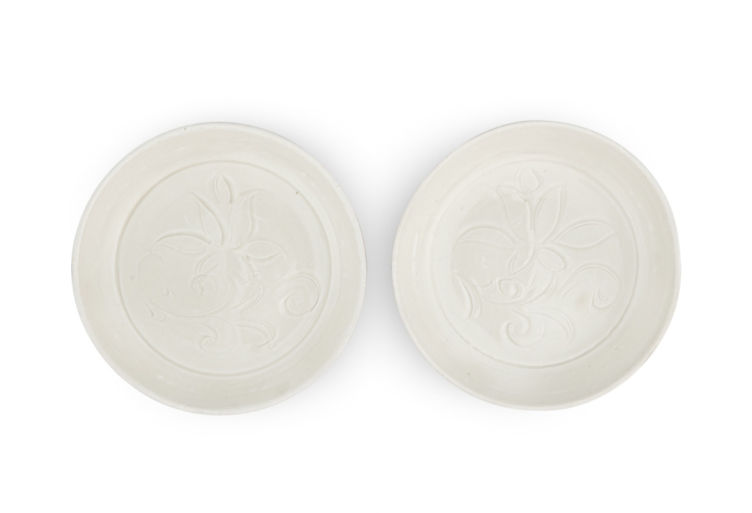 北宋定窑白釉刻莲纹盘一对