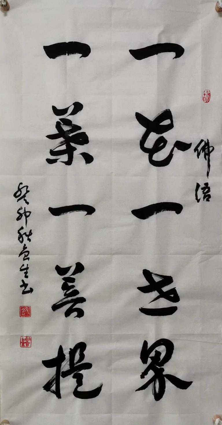还有一种诗句:“一花一世界,一木一浮生,一草一天堂,一叶一如来,一砂一极乐,一方一净土,一笑一尘缘,一念一清静。”这就有些画蛇添足,啰嗦了。