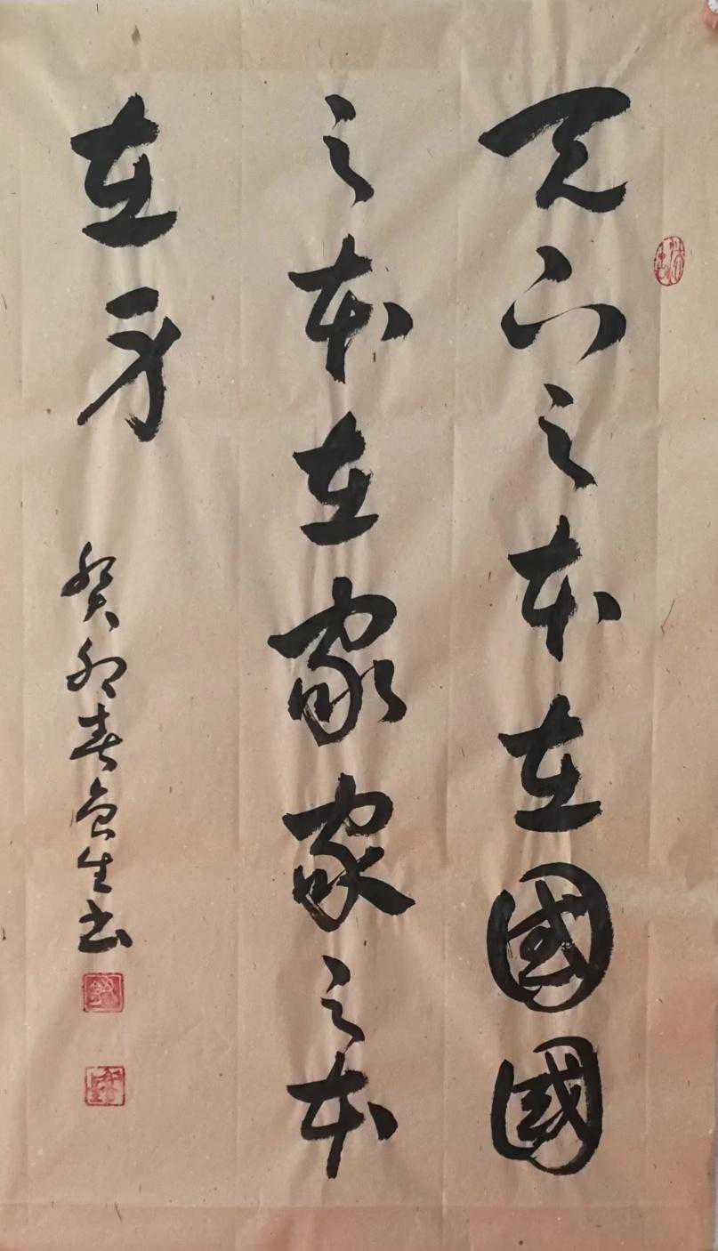 我觉得这句话很好,于是就用宣纸写下来。可以悬挂。