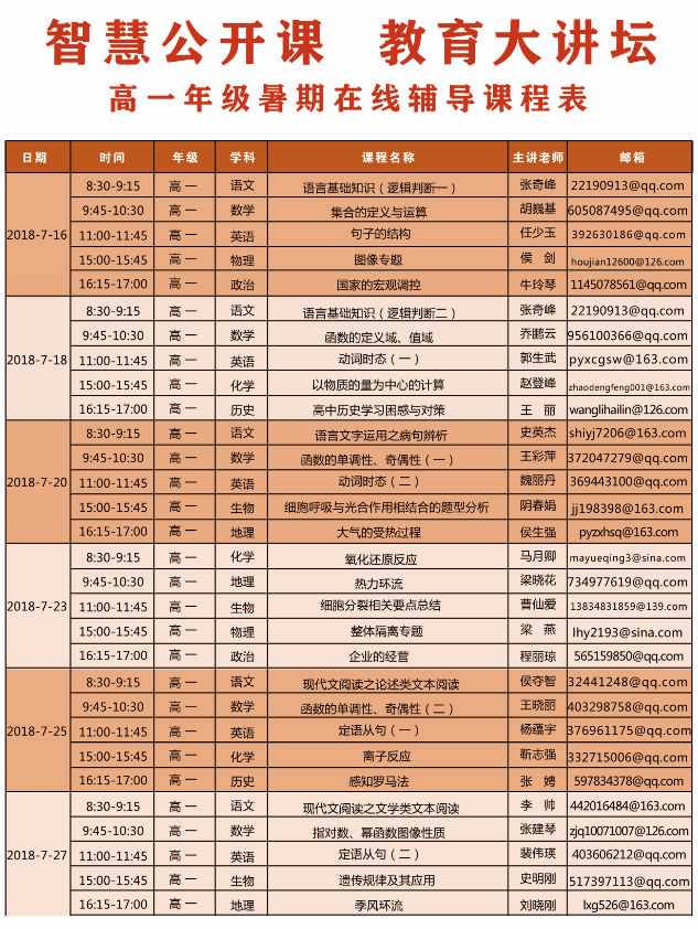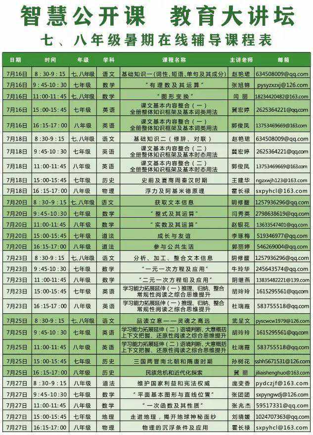 赶紧收藏:直播课堂暑期在线辅导课程表(7月16号开课)