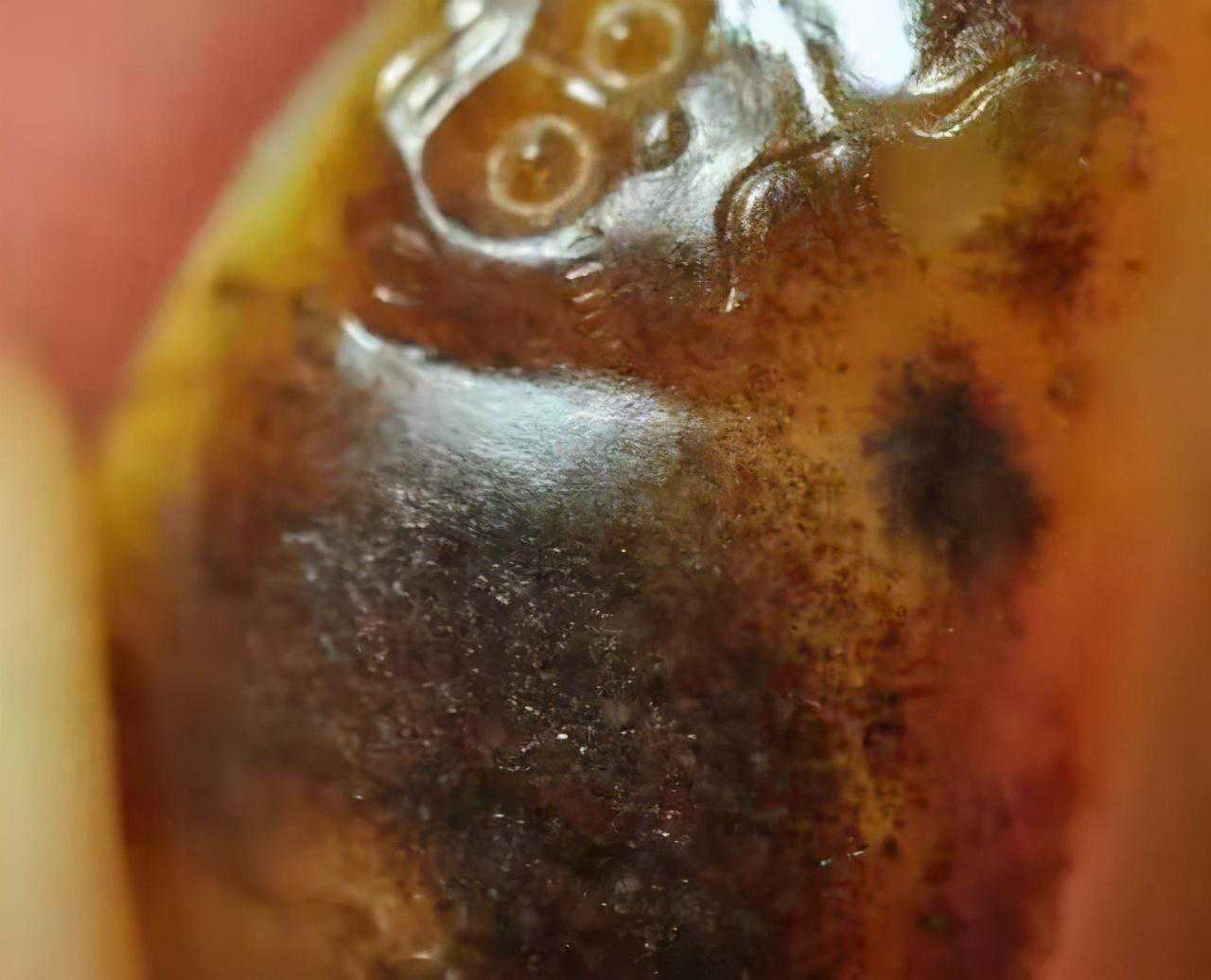 简单的方法是用20倍以上的放大镜仔细观察颜色由表及里的深浅:化学染成的沁色料往往颜色深、重,没有过渡性,质地松散,瑕疵很多,甚至会对把玩者的身体健康造成影响。