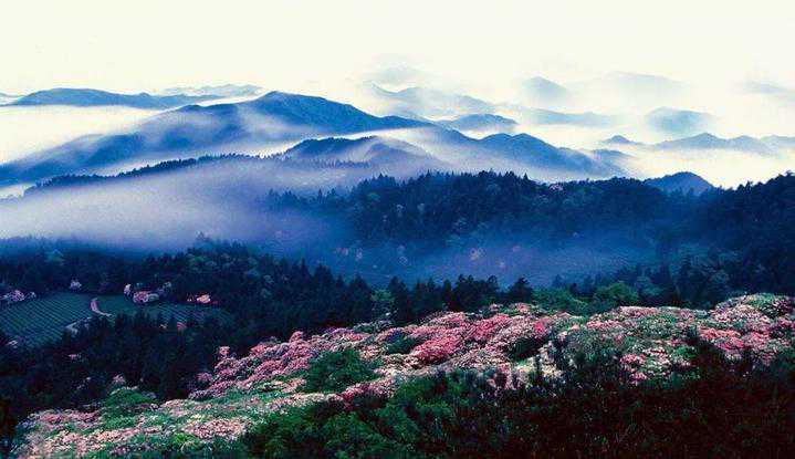华顶山是天台山的主峰,山中风光堪称一绝,云海、日出、杜鹃、雾凇,被誉为“华顶四绝”。站在山顶,只见四周群山如莲花般绽放,妙不可言。华顶国家森林公园植被覆盖率高达92%,号称“天然氧吧”。