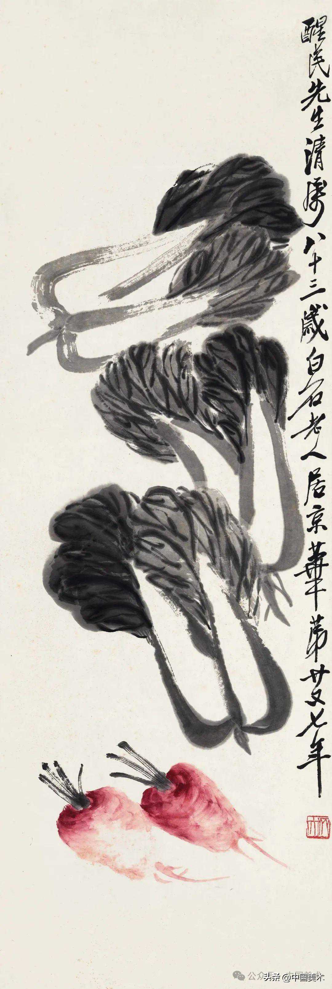 齐白石白菜胡萝卜138×34cm北京画院藏