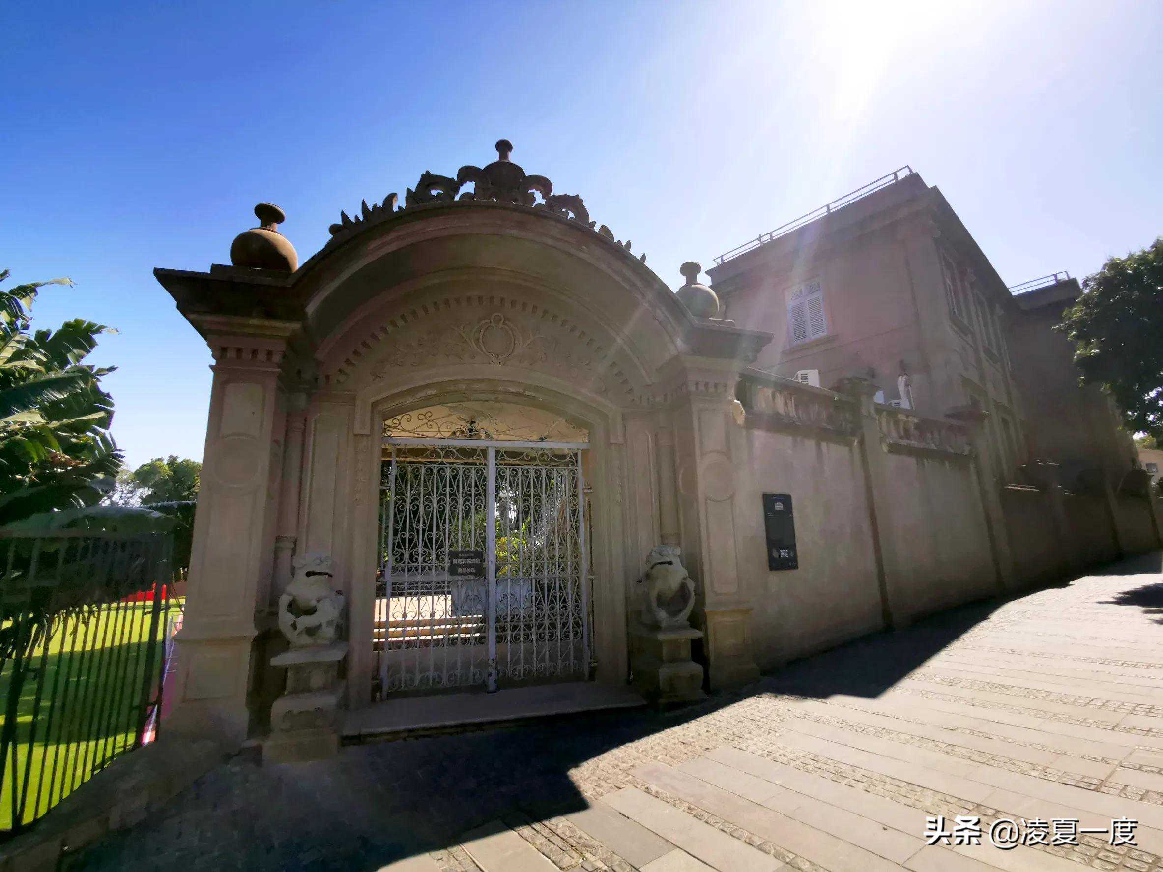 右转进入中华路,中间路过31号坐标四落大厝别墅,现在改成茶馆了,喜欢喝茶的朋友可以进去喝点茶,顺便欣赏一下别墅。继续往前走,到32号坐标马约翰广场,右手边体育场后边33号坐标著名的中国第一别墅:黄家花园,曾经民国首富黄奕住的符宅。因精美奢华,规模宏大被称为中国第一别墅,后来改造成酒店,据说接待过中国很多国家领导人。也是进不去,只能在门口拍拍照,在体育场上感受一下它的壮观。