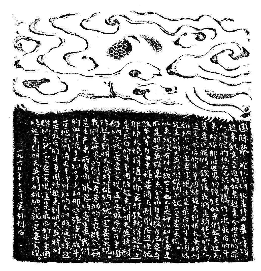 边款:(《国际歌》歌词全文略)一九六零年十二月吴朴刻石。