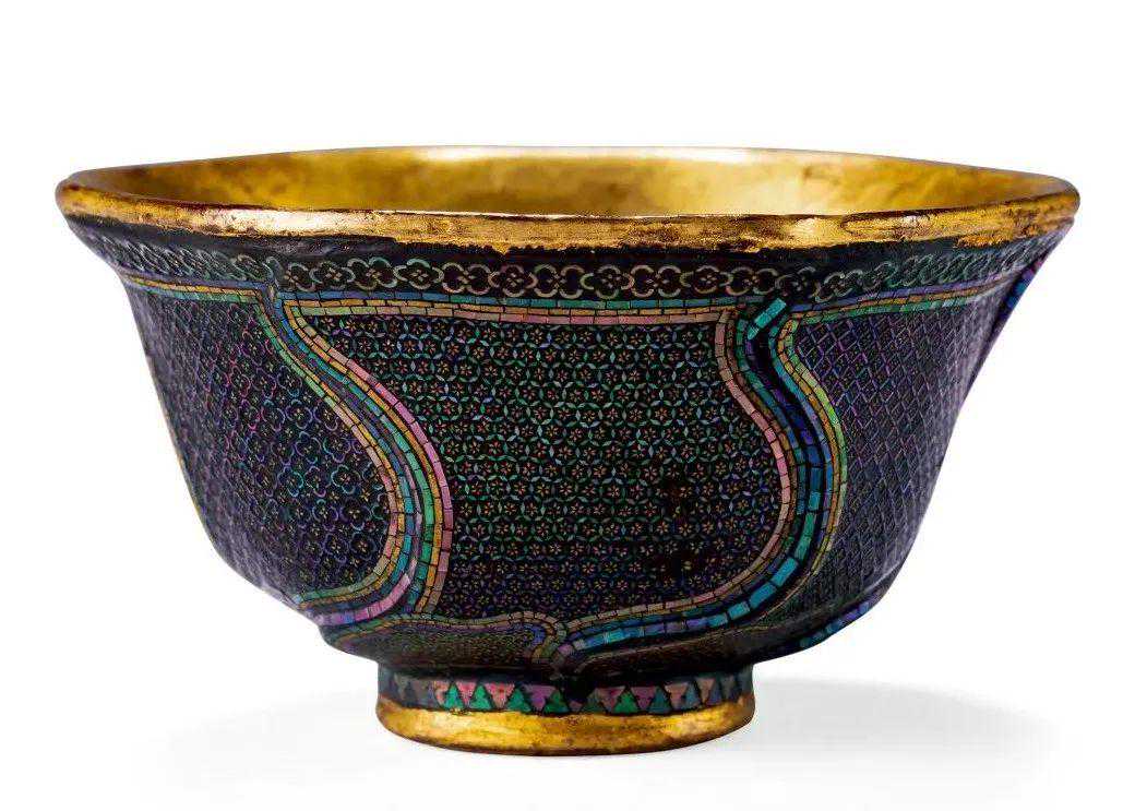 元末明初黑漆嵌螺钿太极纹镀金杯
