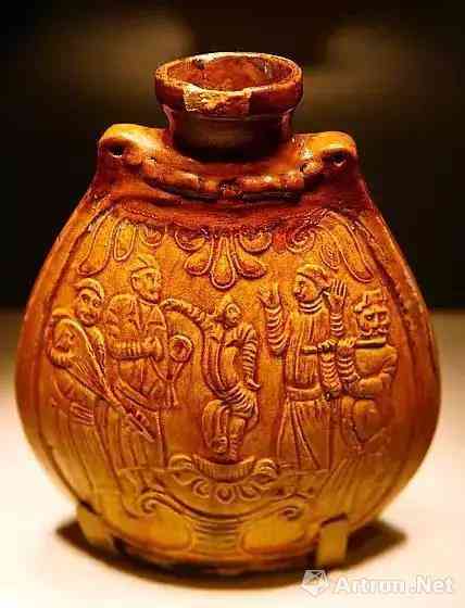 唐代以前的黄釉瓷唐代以前,黄釉瓷已经出现。在中国国家博物馆中,收藏着一件北齐时期的黄釉乐舞图瓷扁壶。可见,黄釉瓷的出现年代是相对较早的。