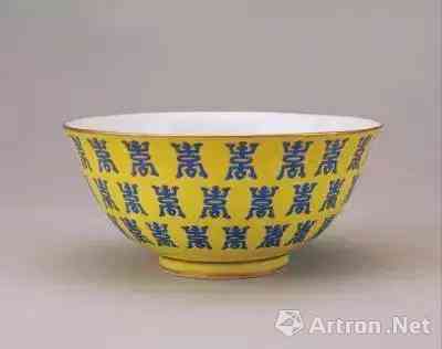 黄地蓝寿字纹碗,清同治,现藏于北京故宫博物院